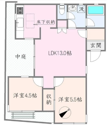 | 間取り/ 広さ(㎡) | 2LDK(洋5.5 洋4.5 LDK13.0) / 52.46㎡ |